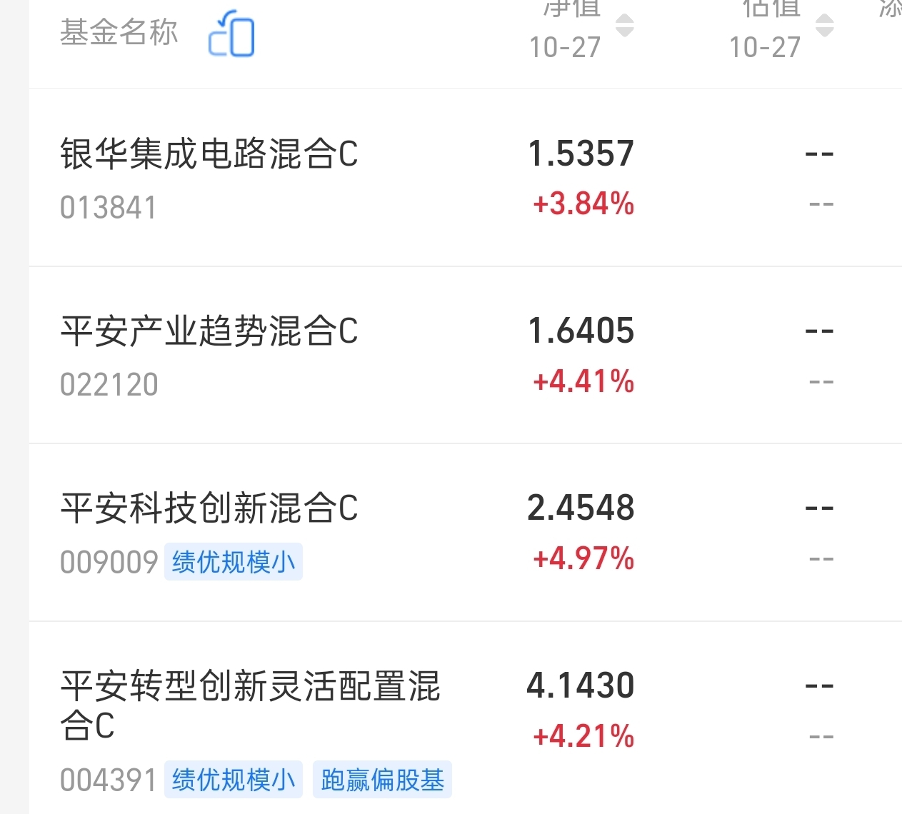 $平安产业趋势混合C$ 今晚涨了4.41%,棒棒哒$平安科技创新混合C$ 今晚涨了4.97%,还是可以的呀