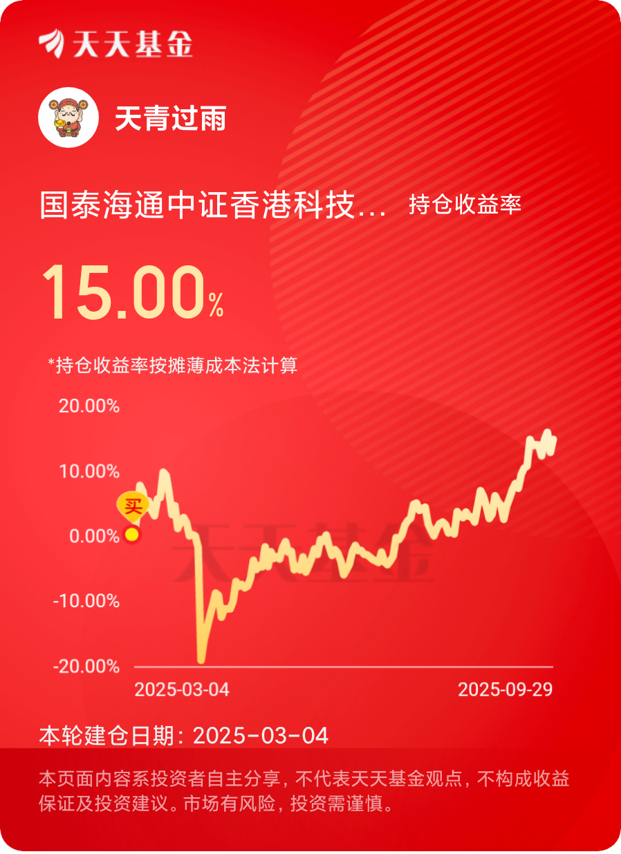 港股科技今天继续上涨,期待假期港股的表现$国泰海通中证香港科技指数发起(QDII)C$ #晒收益#