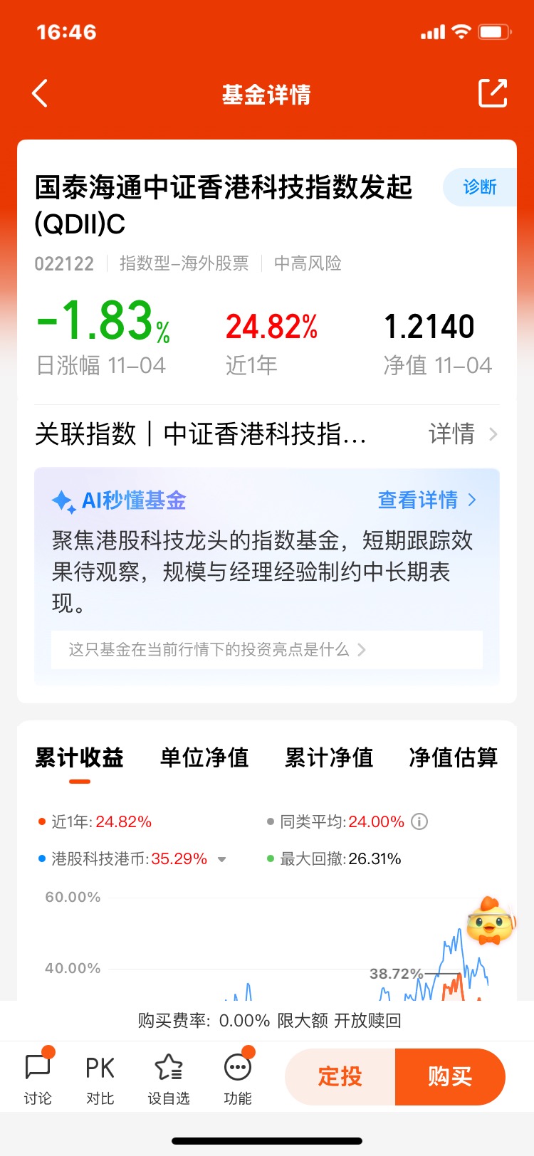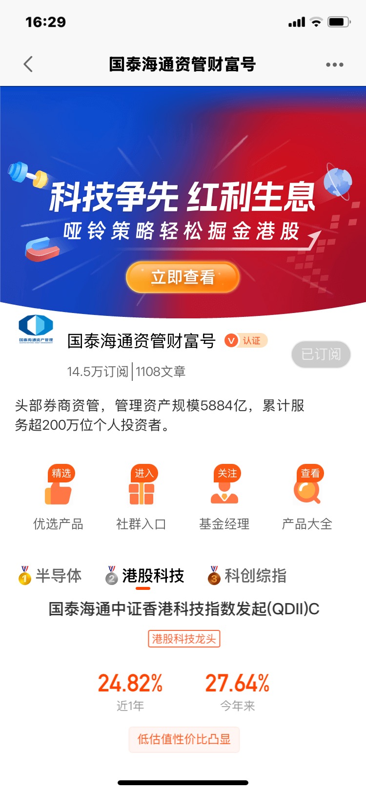 身为一个新手,我最近特别关注了一支指数型基金——国泰海通中证香港科技指数发起(QDII)C(代码:022122)。这支基金以追踪香港科技指数为主,我觉得它在多个方面展现了不错的投资机会。首先,从管理团队和产品矩阵来看,国泰海通作为老牌基金公司,拥有丰富的跨境投资经验。他们的团队在科技领域深耕多年,能够及时把握市场动态。产品矩阵方面,这支基金是QDII类型,这意味着它可以通过合法渠道投资海外市场,降低了个人投资者直接参与港股的门槛。