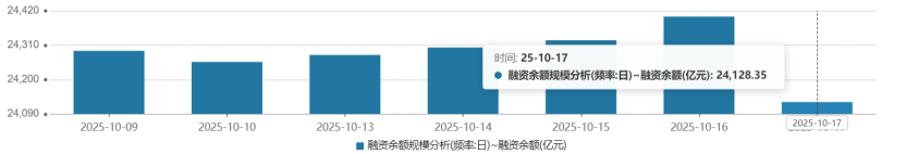 1、两市融资余额减少271.93亿元。 截至10月17日,上交所融资余额报12240.48亿元,较前一交易日减少137.33亿元;深交所融资余额报11813.34亿元,较前一交易日减少134.60亿元;两市合计24053.82亿元,较前一交易日减少271.93亿元。(资讯来源:Wind,华尔街见闻,2025.10.17)