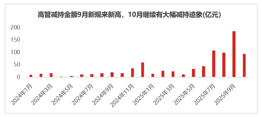 近期部分已披露三季报预告的科技类龙头企业业绩表现不及预期,引发市场对高估值板块盈利兑现能力的担忧。此外,前期部分板块涨幅较大,积累了相应的获利了结压力,市场自身存在技术性调整需求。继9月之后,十月份上市公司高管及股东的减持行为或也对市场形成一定影响。(数据来源:Wind)
