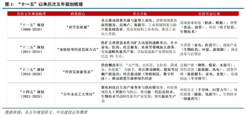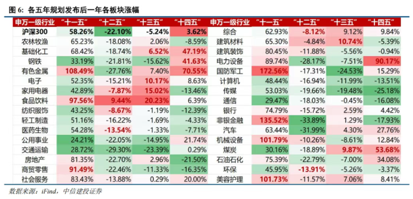 从历史经验来看,五年规划对相关行业的带动作用较为显著。(数据来源:iFind,中信建投证券,以下四段为中信建投证券研报的表述)