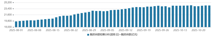 1、截至2025年10月23日,全市场融资余额为24339亿元,环比减少16亿元,降幅0.07%。(数据来源:Wind,2025.10.23)