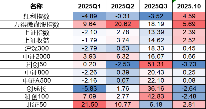 回顾今年以来市场表现,红利资产在前两个季度整体走势较为平淡,但在七月至九月期间,随着科技板块带动市场快速上涨,其表现一般。进入十月后,市场整体转入震荡阶段,此时红利资产的防御属性与估值优势开始显现,表现出较强的韧性。(数据来源:Wind)