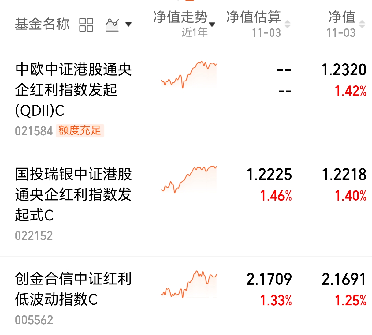 $国投瑞银中证港股通央企红利指数发起式C(OTCFUND|022152)$涨幅1.40%