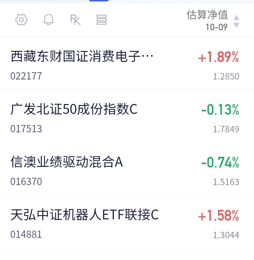 $广发北证50成份指数C$ $信澳业绩驱动混合A$ $东财消费电子指数增强E$ #十月 你打算如何操作?#