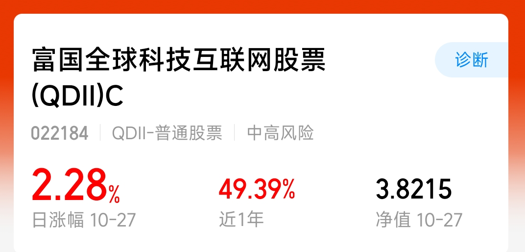 夜盘的美股还是保持不错的,一些美股科技方向全线上涨,尤其是英伟达这方向昨天超4个点,今天这个a股保持分化,不过长期的小牛市已经形成了,看这一波政策的方向还有导向这边的,$富国全球科技互联网股票(QDII)C$ 这个包含了一些美股还有港股,a股的方向,包含了互联网的方向,近一年上涨了49.39%,成立以来涨了2.28%,业绩来看还是比较乐观的呢,我期待后续继续上涨吧!