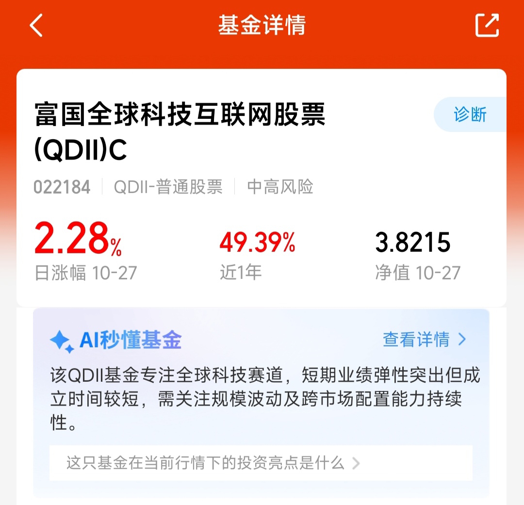 在昨夜美股再度走高、科技板块引领市场创新高的背景下,聚焦全球科技龙头的QDII基金展现出强大吸引力。其中,$富国全球科技互联网股票(QDII)C$ 表现尤为突出,其业绩不仅短期亮眼——近1月上涨4.66%,近3月涨21.33%;中长期同样强劲,近6月与近1年涨幅均接近50%,各阶段均大幅跑赢同类平均,评级优秀,赚钱能力持续在线。