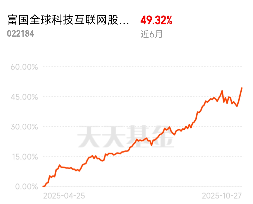 今天加了1000$富国全球科技互联网股票(QDII)C$ ,这只基金是全球选股,当前前十大重仓中有腾讯、谷歌、台积电、阿里、博通、英伟达等,可以同时把握多个市场的科技发展机会,也可以规避单一市场的风险,而且调仓灵活,近三个月+21.33%,近六个月+49.32%,业绩优秀赚钱能力强。
