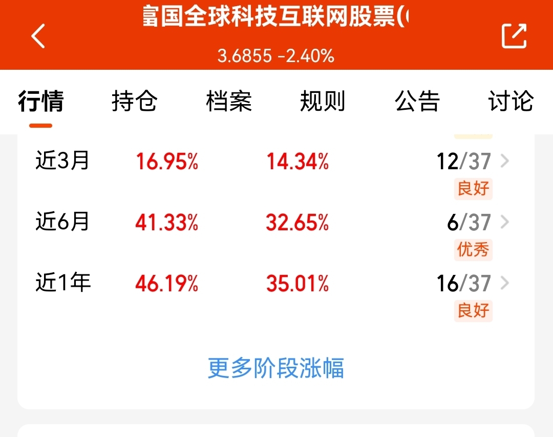 市场今天回调了,但最近本来就震荡,这都是正常波动。别慌,基本面没变,优质的那些标的,长期拿着还是值得的。$富国全球科技互联网股票(QDII)C$ 近三月涨16.95%,给力