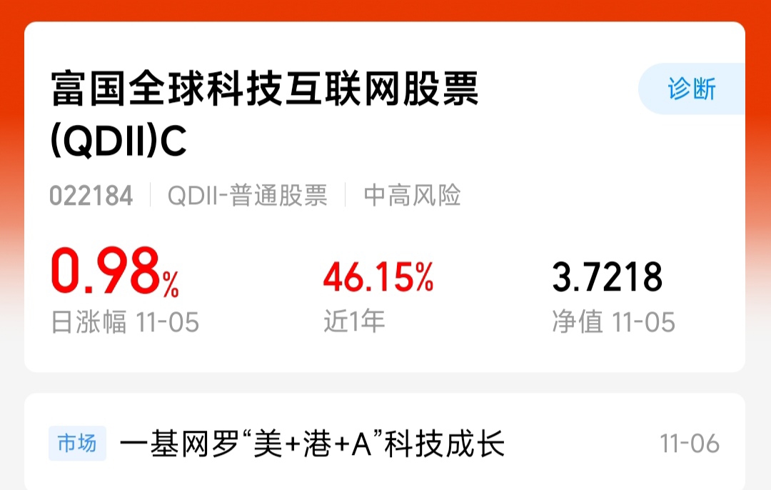 隔夜美股表现强势,三大指数集体收涨,科技板块领跑市场,显示反弹动能持续增强。在当前市场环境下,$富国全球科技互联网股票(QDII)C$ 展现出独特配置价值——该基金精准布局全球科技互联网赛道,覆盖美股与港股双市场的头部企业,既包含谷歌、英伟达等人工智能领军者,又囊括腾讯、台积电等亚洲科技支柱,形成跨市场的科技巨头组合。从历史业绩来看,该基金近6个月收益率达41.33%,同类产品业绩表现不错。随着多家机构纳指产品陆续限额,该基金仍保持额度开放状态,先建个底仓。