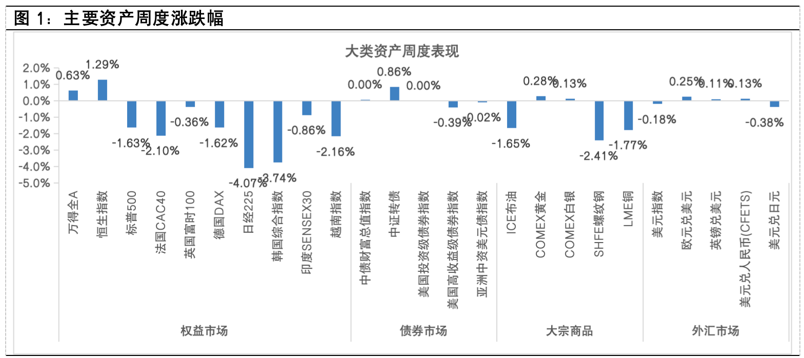 受此影响,全球股市震荡加剧,尤其是人工智能相关板块跌幅较大,日韩由于前期涨幅较大而剧烈调整。