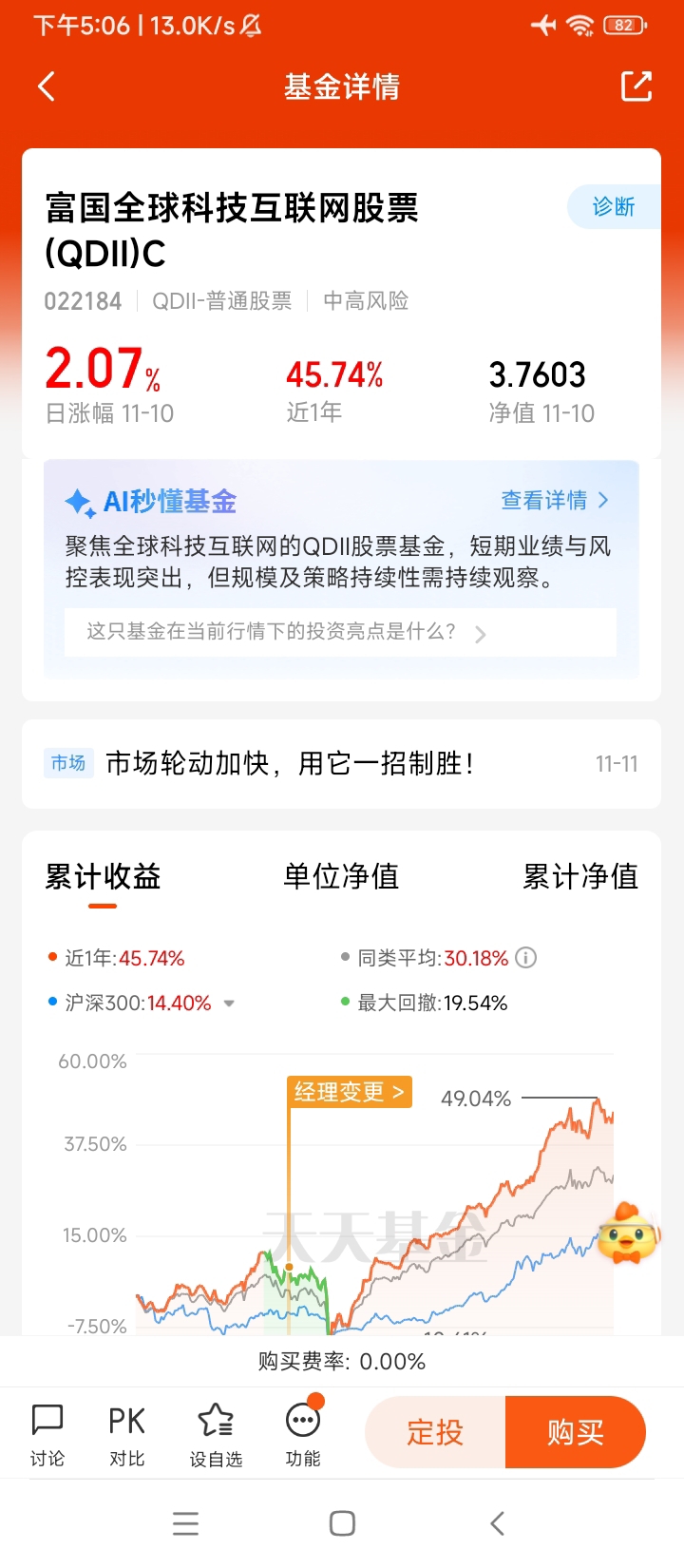 在科技革命的浪潮中,机遇永远属于敢于布局、坚定长期的投资者。我已正式上车富国全球科技互联网股票(QDII)C,并做好了长期持有、持续加仓的准备,誓要在全球科技增长的浪潮中收获属于自己的长期收益。也期待更多志同道合的投资者能够认清科技产业的长期价值,加入这场关乎未来的投资布局,与优质基金共成长,共享时代红利!@富国基金管理有限公司