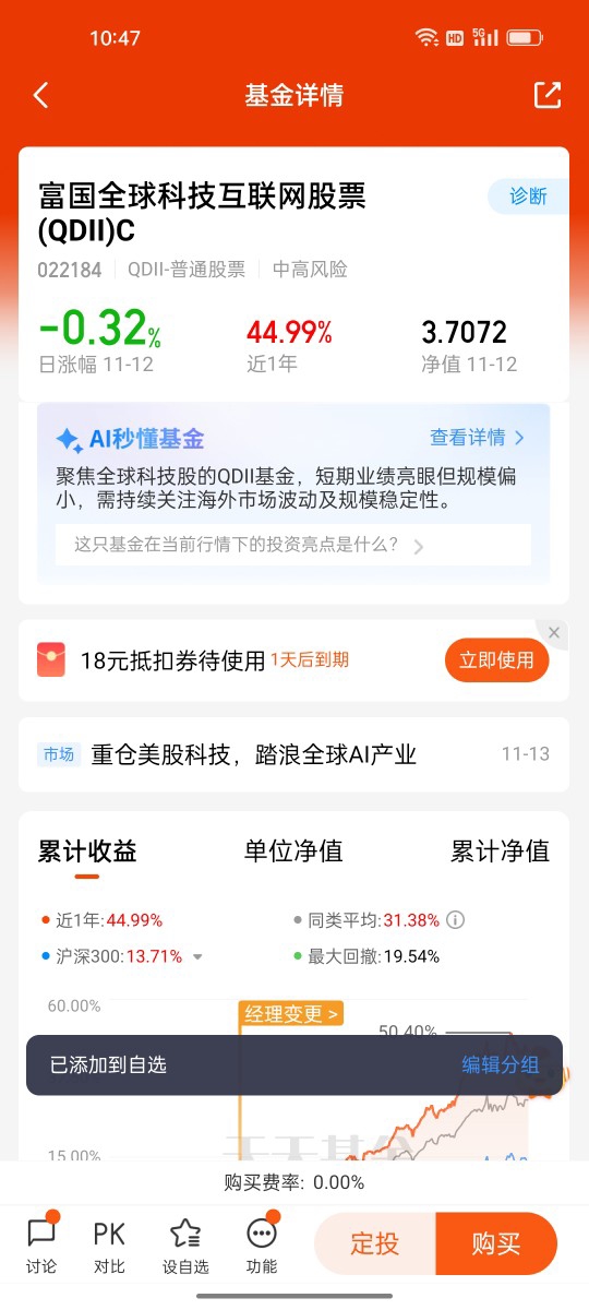 全球科技互联网板块虽有短期波动,但政策利好、流动性宽松、盈利增长三大逻辑共振,长期仍是"星辰大海"。我已将$富国全球科技互联网股票(QDII)C$ 加入自选,后续会持续跟踪基金持仓调整和板块动态,适时完成建仓,与全球科技产业共成长。