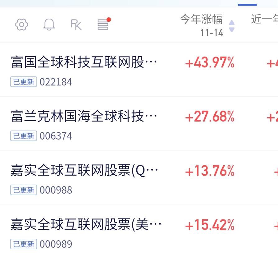 $国富全球科技互联混合(QDII)美元现汇A$ 今年以来涨幅+27.68%