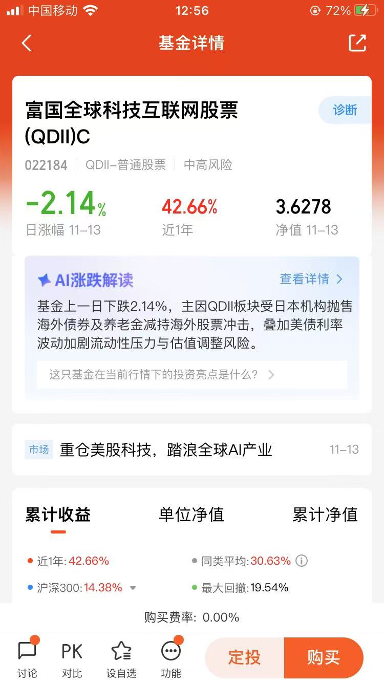 对于我们这些普通投资者来说,找到好基金,然后耐心持有,也许比频繁操作更管用。我的易方达、万家和华宝纳斯达克基金组合,我会继续拿着,用定投平滑成本,等待下一波科技浪潮的到来。当然富国基金旗下的几只美股科技基金也不错,感兴趣的朋友可以关注$富国全球科技互联网股票(QDII)C(OTCFUND|022184)$$富国全球科技互联网股票(QDII)A(OTCFUND|100055)$
