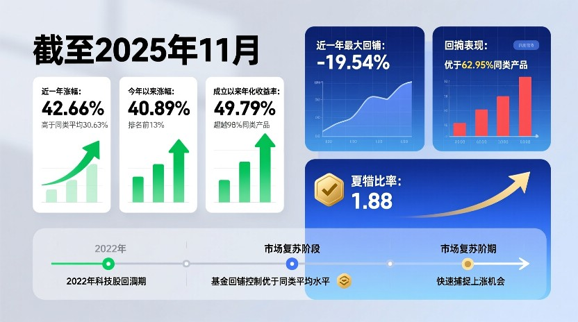 截至2025年11月的数据显示,该基金近一年涨幅达42.66%,大幅超越同类平均的30.63%;今年以来涨幅为40.89%,在同类产品中排名前13%;更令人印象深刻的是,成立以来年化收益率高达49.79%,超越98%的同类产品。