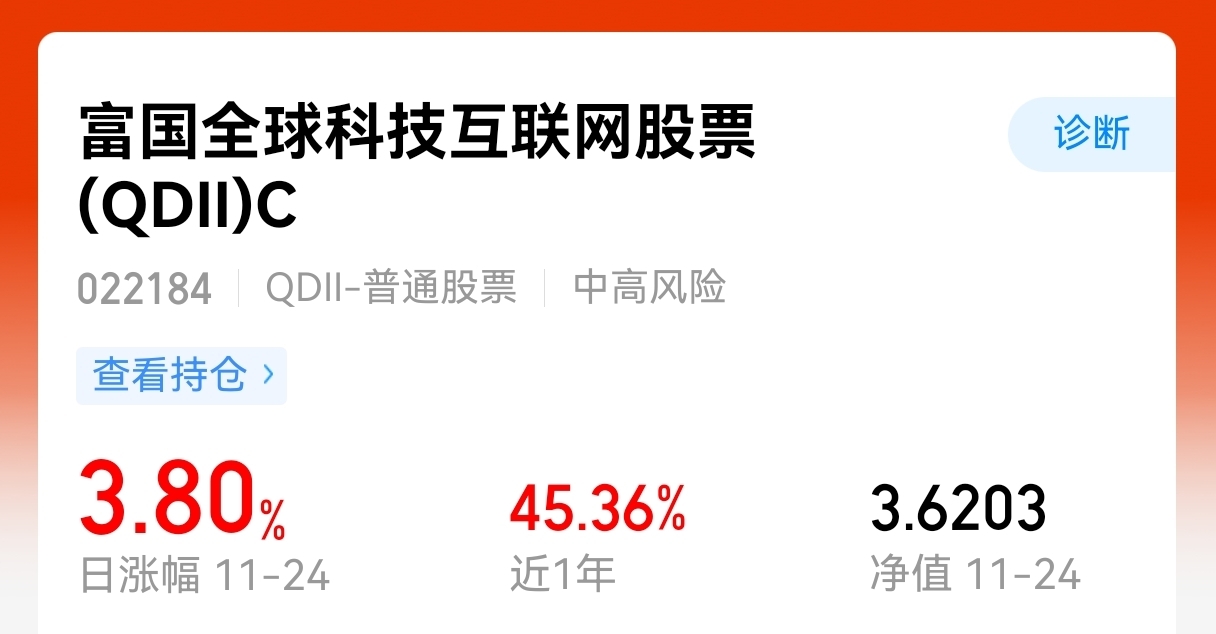 红彤彤看着就是舒服,科技又涨回来了,当AI大模型重塑产业生态,半导体周期强势上行,全球科技互联网行业正迎来创新与估值的双重共振。$富国全球科技互联网股票(QDII)C$ 这个精准捕捉美股龙头的创新红利、港股科技的修复潜力,以全球化布局、专业化管理核心优势,成为把握科技长牛的优选工具,今日涨幅3.80%,太强了。