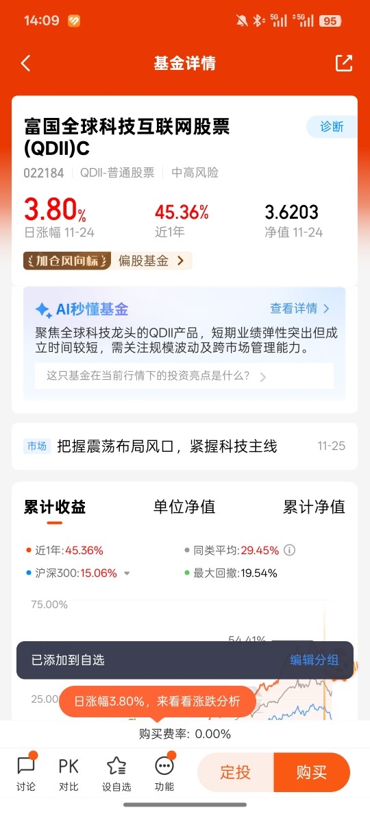 投资者可选择$富国全球科技互联网股票(QDII)C$ ,以每月定投方式分散风险。当前左侧布局虽可能面临短期震荡,但在流动性宽松与产业景气共振下,全球科技互联网的配置价值已逐步凸显。@富国基金管理有限公司