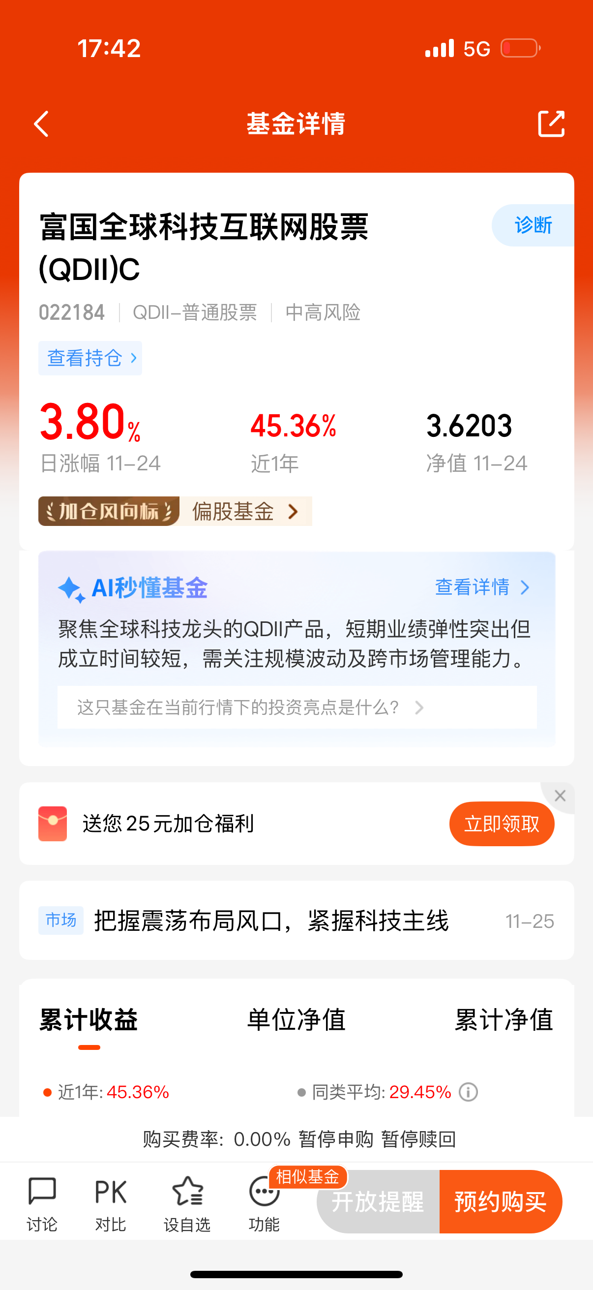 AI又沸腾了,最近美股科技巨头们强势反弹,已经修复了上周四的跌幅,真猛!这只美基$富国全球科技互联网股票(QDII)C$ ,持仓覆盖了港股+美股的科技巨头们,谷歌、博通、特斯拉都是隔夜猛涨的大咖,像大权重谷歌占比8.5%,最近谷歌有不少热点,发布了Gemini 3,以1501分的惊人成绩登顶全球测试排行榜;又发布了第七代TPU Ironwood,训练和推理性能比前代提升了四倍,再次验证了芯片跟大模型协同创新升级的趋势。而且北美科技巨头们用真金白银为AI未来投票,谷歌、微软、亚马逊和Meta四大巨头继续大幅上调AI运作资本开支,继续AI算力基础设施。这只正好紧跟AI时代发展,我继续拿稳。