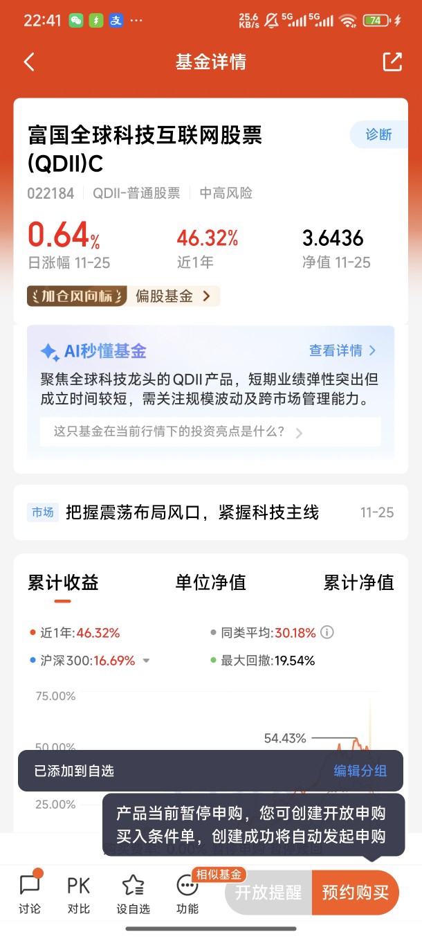 #今年买基金赚了多少钱?# $富国全球科技互联网股票(QDII)C$