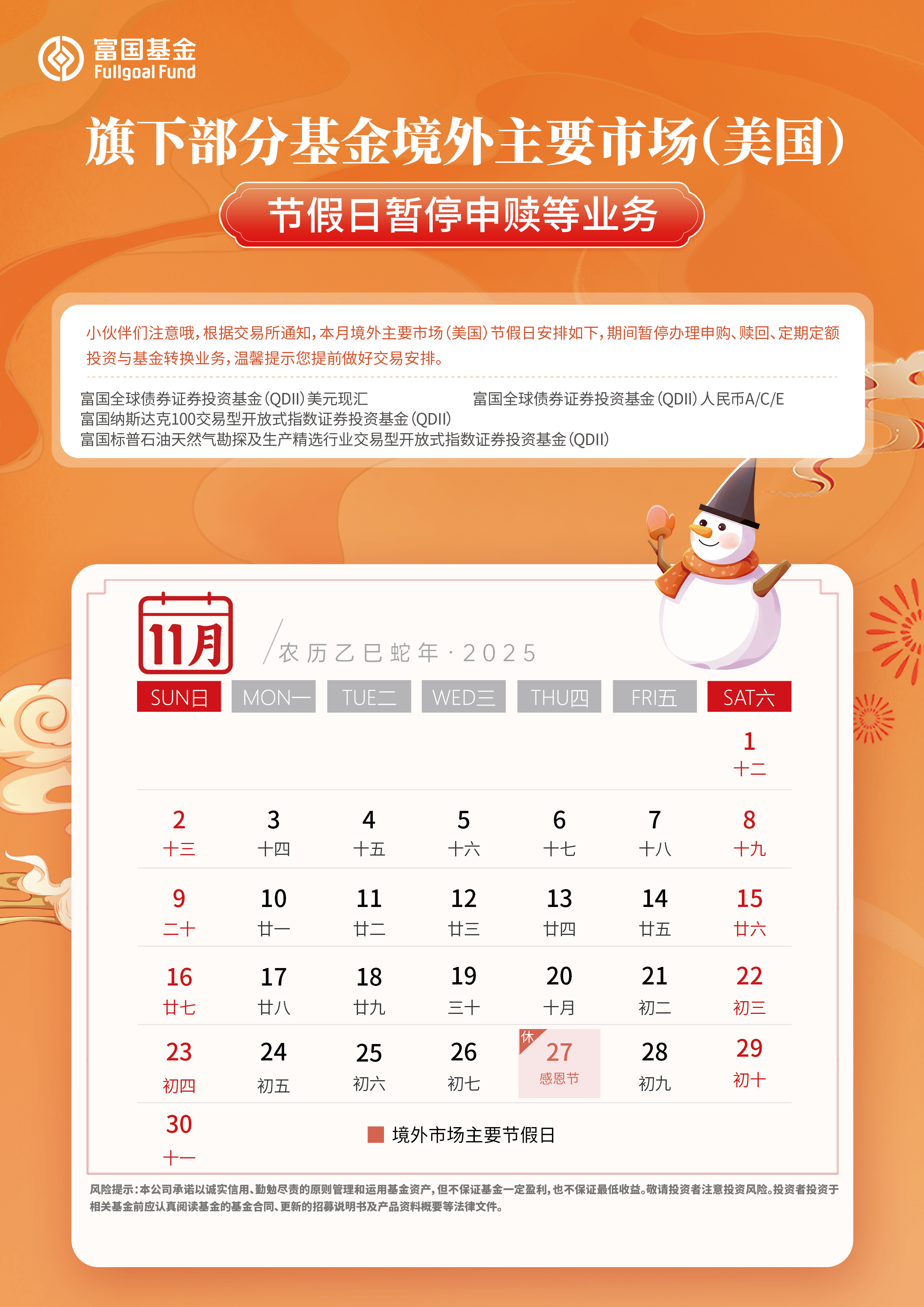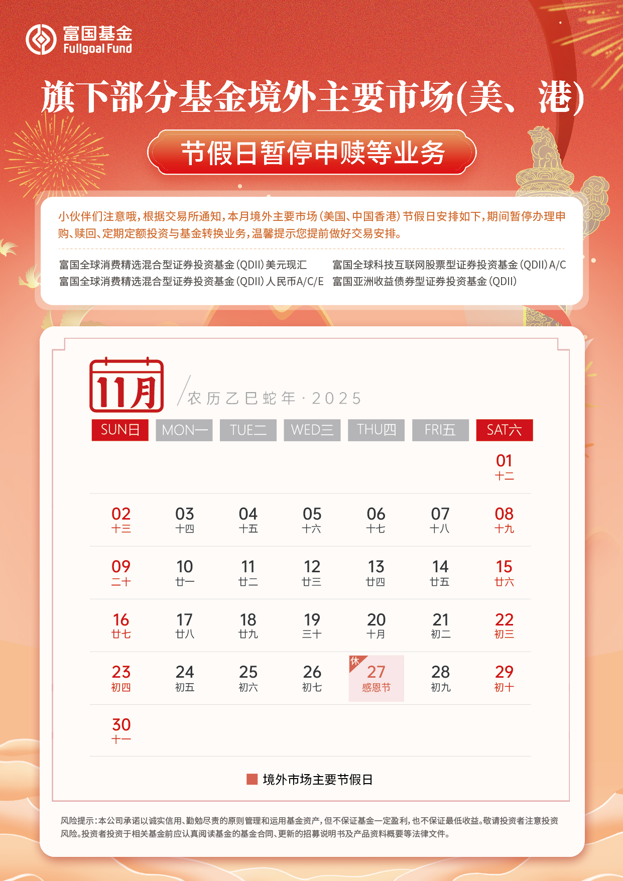 【交易指南】11月旗下部分基金境外主要市场(美、港)暂停申赎!