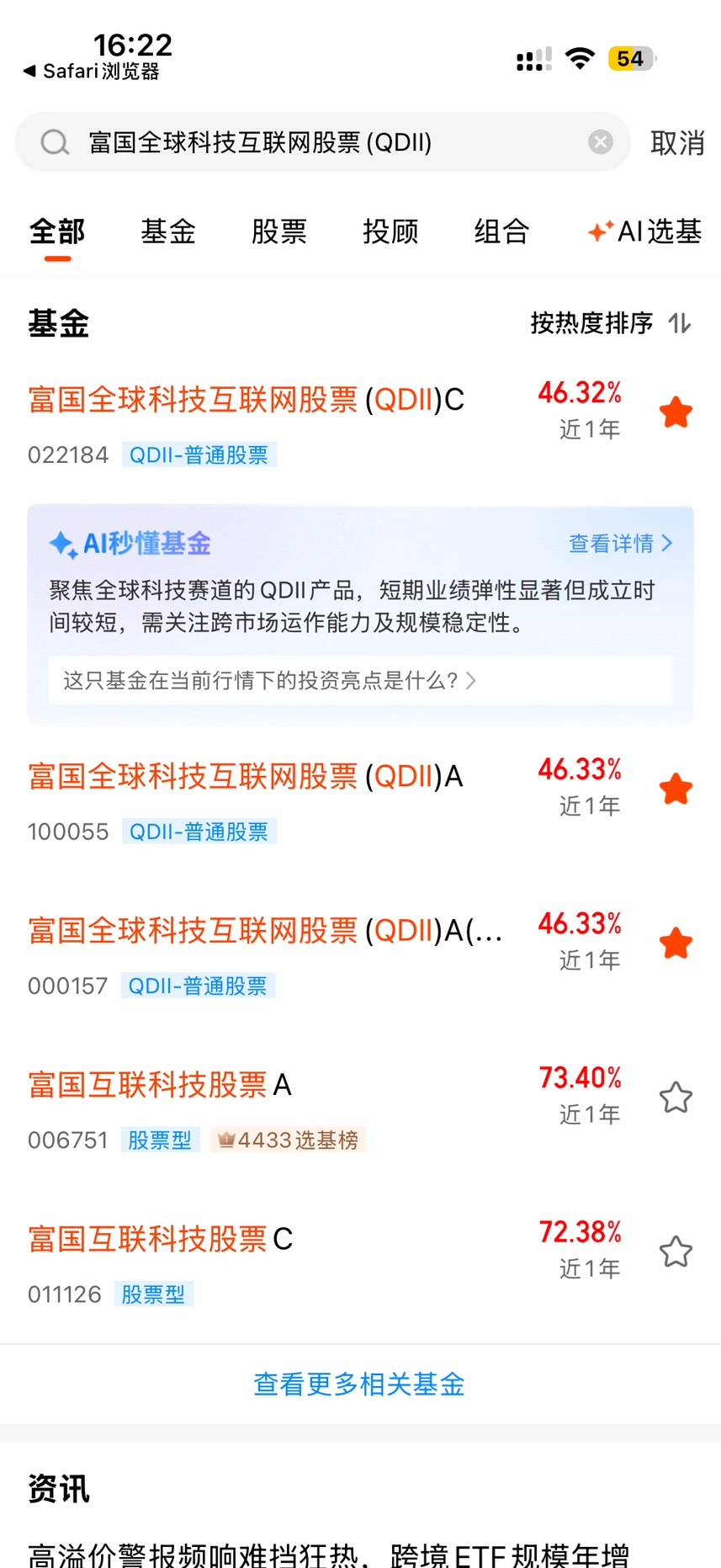 写在最后:投资美股科技,特别是通过QDII基金,确实是分享全球创新红利的一个重要途径。纳斯达克100指数作为全球科技龙头的聚集地,长期上涨的基石在于美国经济的韧性和科技行业的持续进步。只要这两块基石不动摇,AI的浪潮持续推进,指数长期向好的格局就还在。当然,短期波动、估值争论、政策变化(比如美联储货币政策、关税)都是实实在在的风险,市场的分歧也印证了这一点。对我来说,在富国这只基金上,选择继续持有观望,是基于对产品定位、基金经理策略和历史业绩的综合考量,也是基于对科技大趋势虽有担忧但未转向悲观的判断。市场迷雾重重,边走边看吧,至少目前,我选择留在牌桌上。$富国全球科技互联网股票(QDII)C$ $富国全球科技互联网股票(QDII)A$