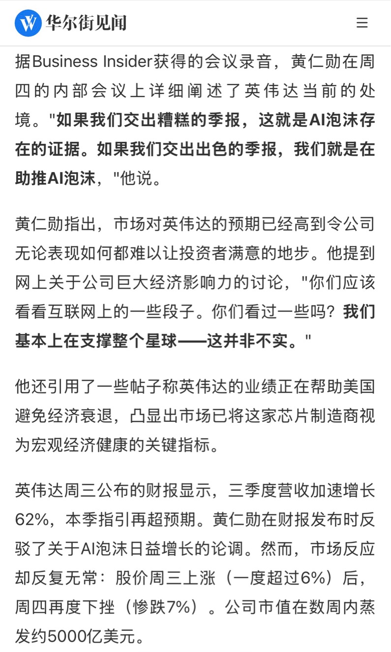 2.机构动向的信号意义:蒂尔宏观基金、软银、桥水、段永平这些大佬的动作,敏锐度肯定没问题。他们的减持甚至清仓,确实敲响了警钟,说明部分资金认为短期估值过高或者存在调整风险。但同时也要看到,市场永远有分歧。54%的全球基金经理认为AI相关股票处于“泡沫区域”,60%认为整体股票被高估,这意味着还有相当一部分人并不这么看。而且,机构调仓的原因可能很复杂,未必完全代表对长期趋势的否定。