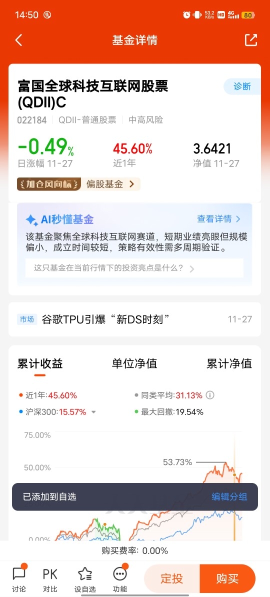 我的持仓策略方面,目前我主要持有一些大型科技股和ETF。例如,我配置了富国全球科技互联网股票(QDII)C(022184),这样可以分散个股风险,同时享受整体科技板块的增长红利。当然,我也保留了一部分现金,以防市场进一步回调时可以抄底。