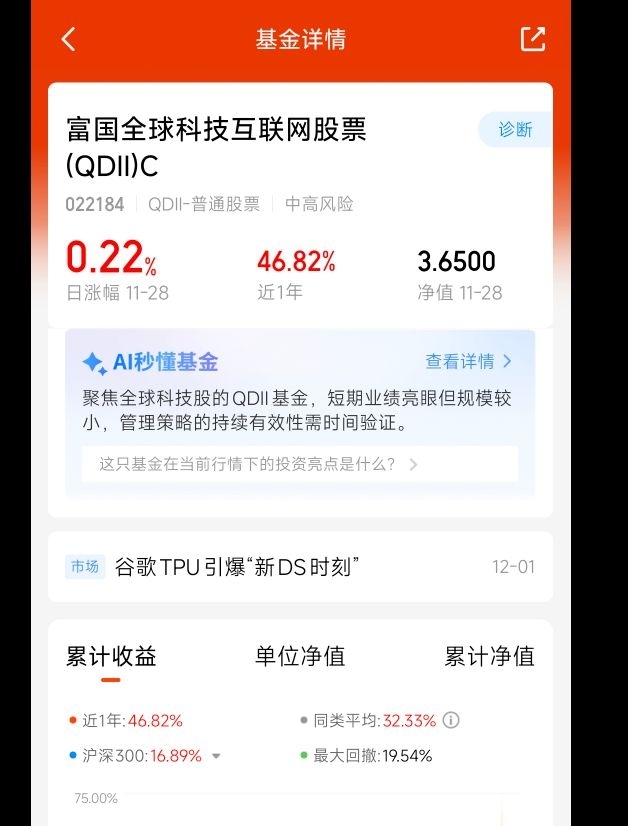 我持有富国全球科技互联网C,看重它投资了全球AI核心企业。不仅捕捉到了美股的科技