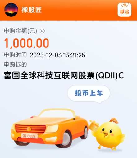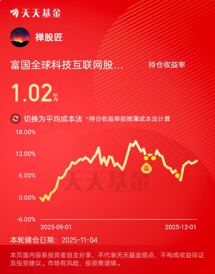 #晒实盘#A股科技股刚调整完,港股腾讯、阿里也跟着晃,但别慌!这时候反而是捡便宜的好时候。我瞅准机会,加仓了$富国全球科技互联网股票(QDII)C(OTCFUND|022184)$,这波操作稳了! 前期的仓位,虽然回吐了一点利润,但依然有正收益。