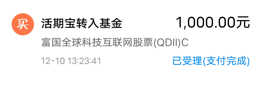$富国全球科技互联网股票(QDII)C$(022184)今天加仓1000元,美股