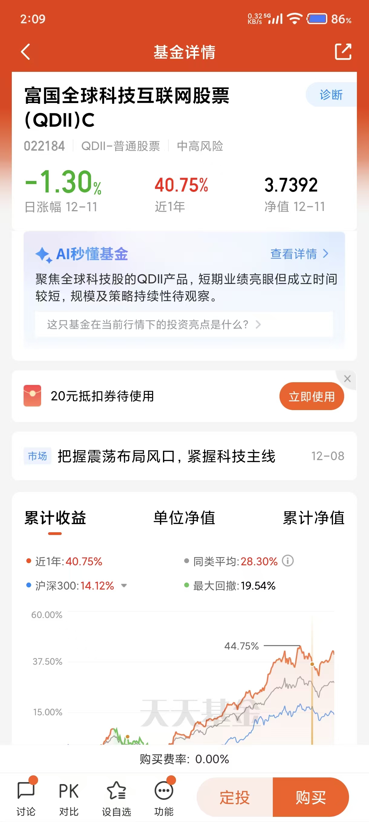 今天我选择加仓1000元富国全球科技互联网股票(QDII)人民币C(022184),主要投资于美国、中国(包括港股)、欧洲、日本等全球市场的科技公司,如美国的微软、苹果、英伟达,中国的腾讯、阿里巴巴等聚焦于科技创新、互联网、软件、半导体、云计算、人工智能等前沿领域。随着人工智能科技行业的不断发展,这只基金有望迎来一波行情。$富国全球科技互联网股票(QDII)C(OTCFUND|022184)$
