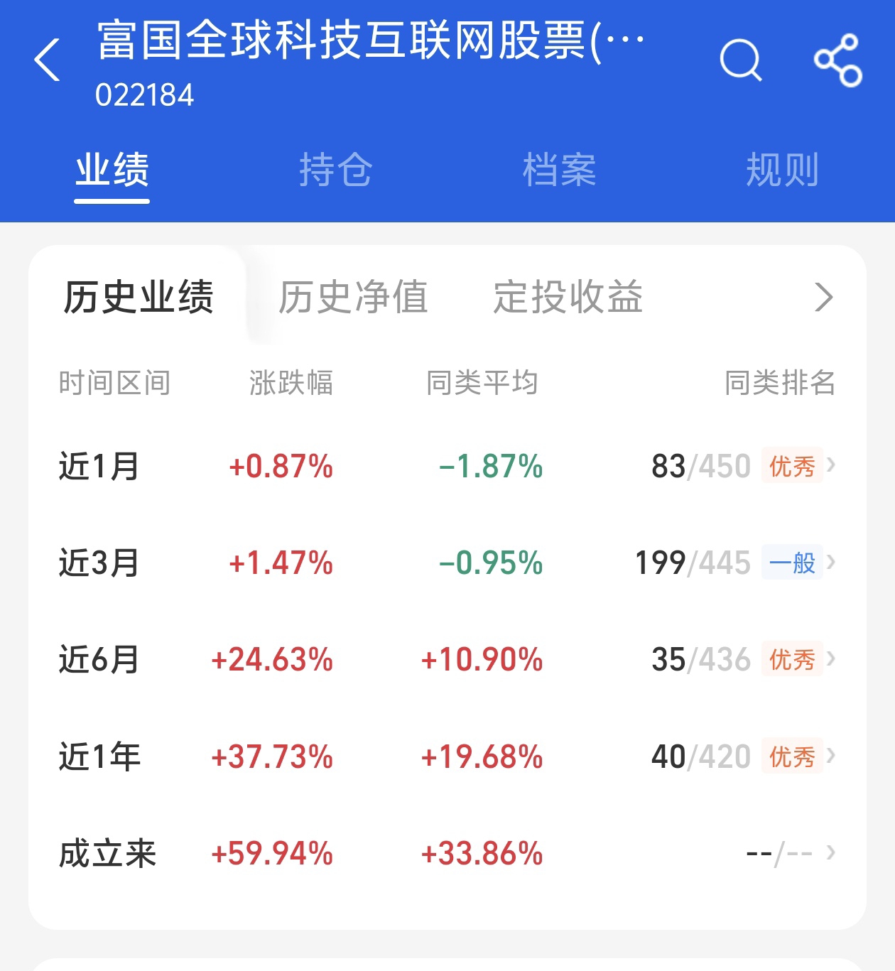行情回暖,三大指数集体上涨。今天我也是加仓了$富国全球科技互联网股票(QDII)C$ +2000元,基金近期表现的也是非常的优秀,近6个月上涨了24.63%,近一年的收益率高达37.73%,盈利能力强。基金全球化布局,降低了单一市场波动的风险。目前全球科技板块也在逐步的回暖、上涨中。随着AI技术赋能、云业务增加等核心动力仍在强化。叠加美联储降息,全球流动性宽松加持,整体上涨潜力大。随着全球科技互联网企业营收、净利润大幅增长,将迎来新一轮的上行周期。期待后期收益。