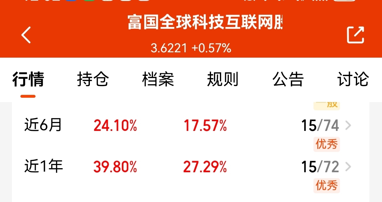 这个方向真不错,当AI重构人机交互范式、全球化布局打破区域增长边界,全球互联网行业正迎来技术革新与商业变现的双重爆发期,这个风口还是要把握住,今日加一波$富国全球科技互联网股票(QDII)C$ ,近六个月涨幅24.10%,近一年涨幅39.80%,全球科技都在里面,覆盖面很广泛,前十大持仓有谷歌、腾讯、阿里巴巴等,都是科技龙头。
