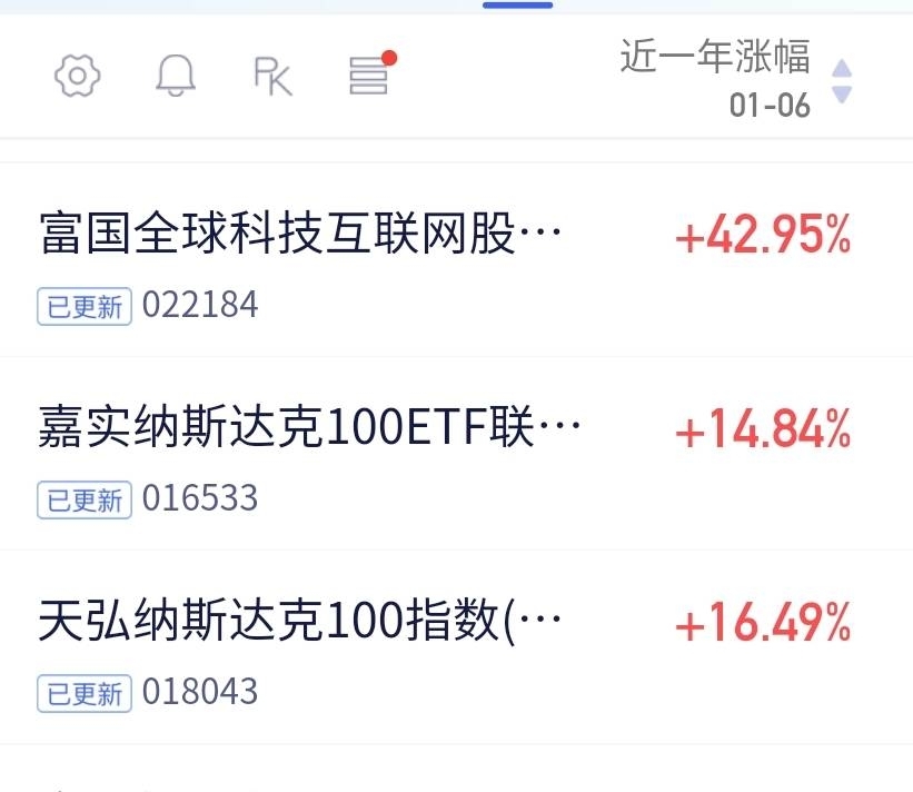 $天弘纳斯达克100指数发起(QDII)A$ 近一年涨16.49%