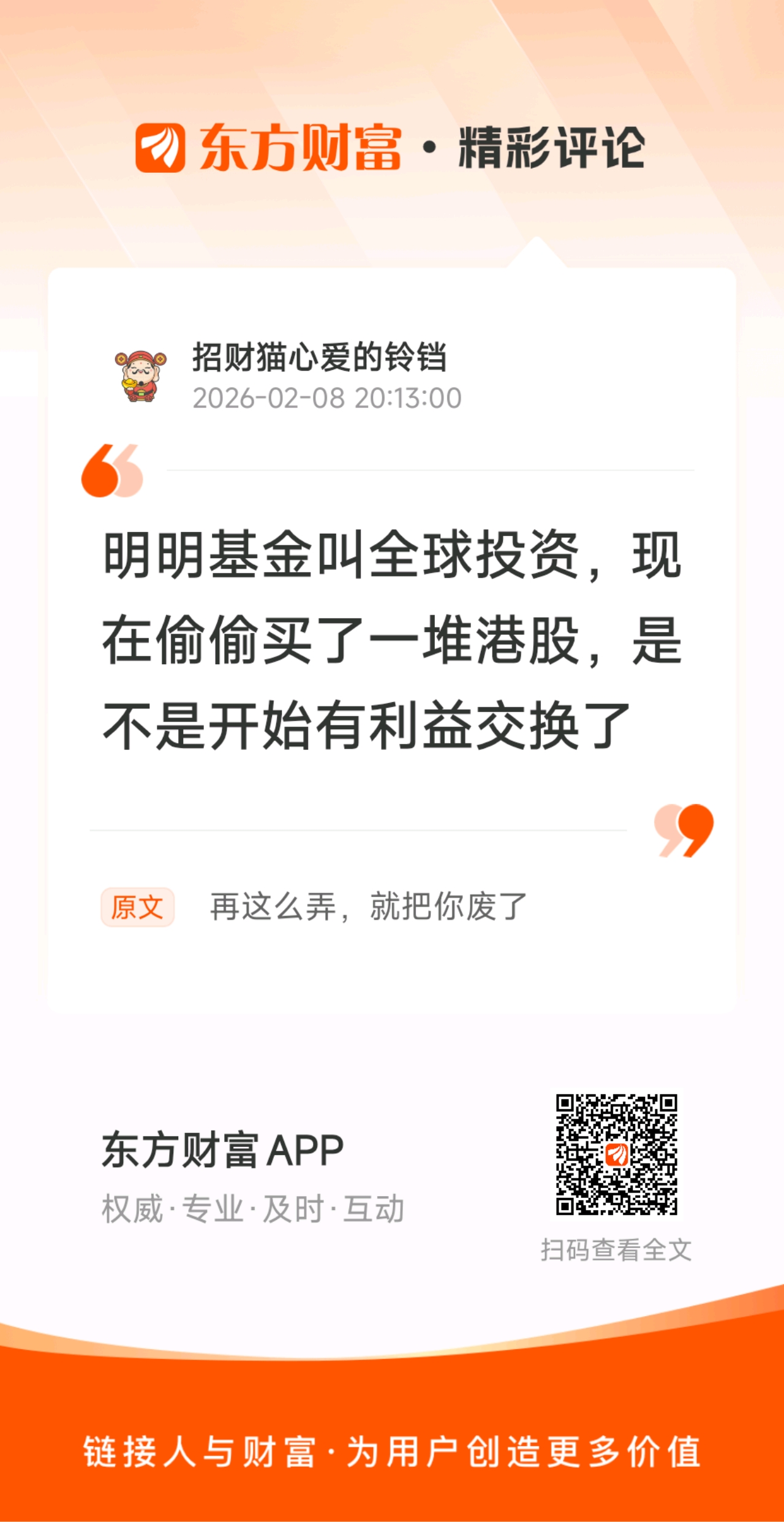 //@招财猫心爱的铃铛 :明明基金叫全球投资,现在偷偷买了一堆港股,是不是开始有利益交换了