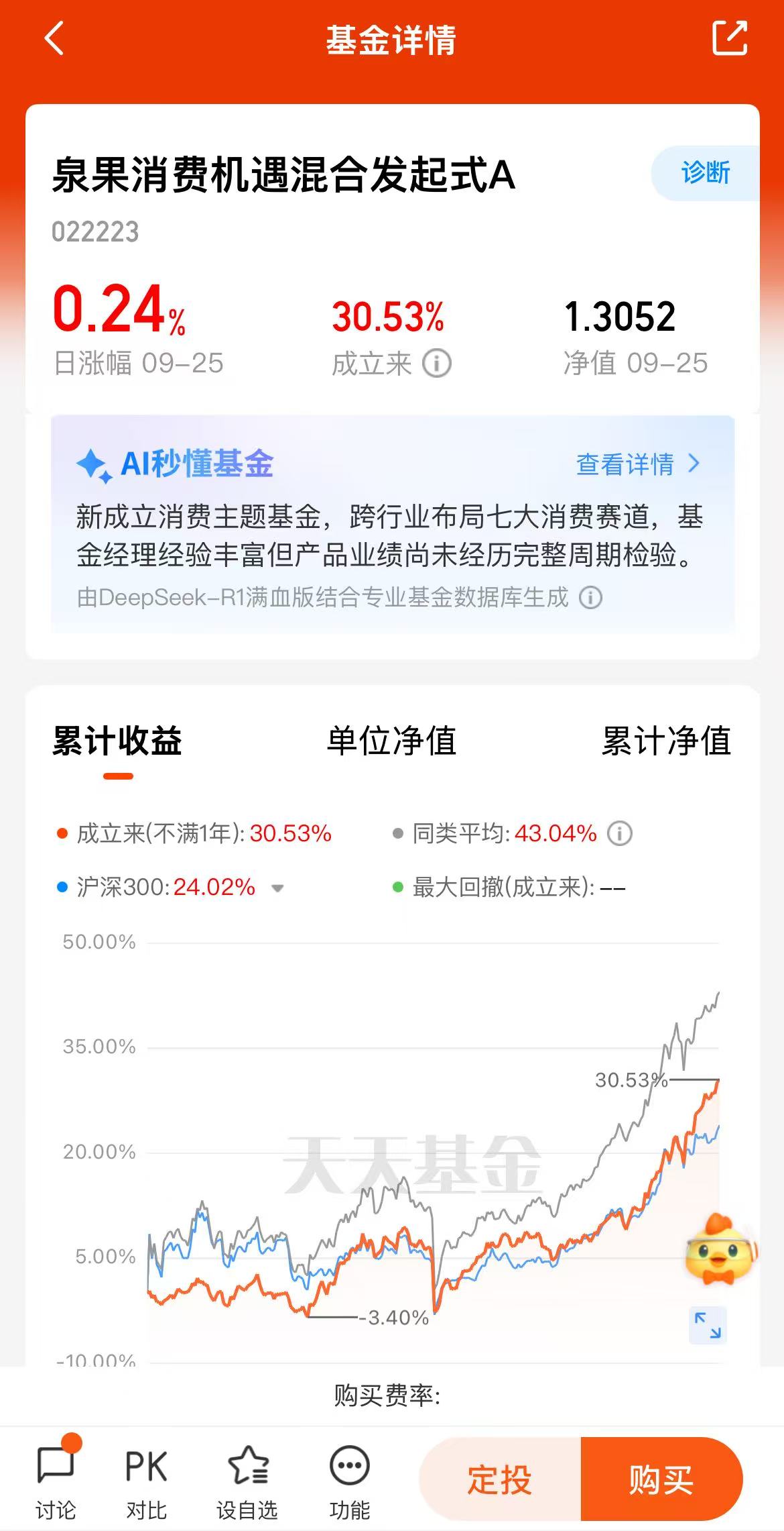 当前消费市场正处于情绪消费崛起与旧消费复苏的交汇点,新消费和旧消费的融合为投资机会提供了广阔空间。泉果消费机遇混合发起式A基金,凭借其主题投资、灵活配置和行业洞察力,具备一定的投资潜力,尤其适合对消费趋势有长期看好、愿意参与情绪消费和国潮投资的投资者。