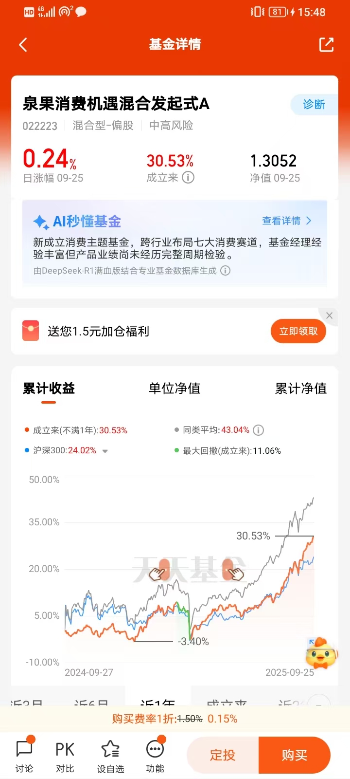 通过泉果消费机遇发起式混合A发起式基金布局,投资者可以把握上述消费新趋势和投资机会。该基金关注潮玩文创、食品饮料、家电制造、互联网、服饰等多个领域的投资机会,由经验丰富的基金经理孙伟管理,旨在通过精选个股和大类资产配置策略,实现基金资产的长期稳健增值。考虑到消费行业的韧性和多元化的投资机会,泉果消费机遇混合发起式基金为投资者提供了一个有效的投资工具,以期在消费复苏的大背景下获得良好的投资回报。事实也确实如此,泉果消费机遇混合发起式A基金今年以来也是获得31.31%的收益回报,比起沪深300指数都要优秀的多。