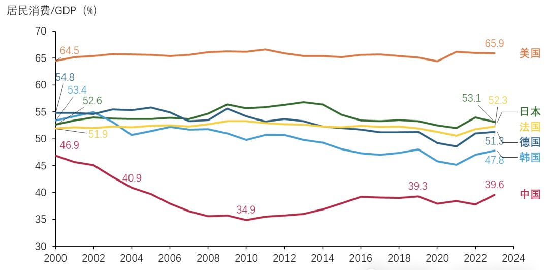 衡量一个国家内需强不强,一个核心标准就是居民消费占GDP的比重。发达国家这个数字几乎都在50%以上,世界平均水平也高达45%以上。而我们呢?只有39%左右,比大多数发达国家低了一大截,提升空间巨大!咱们14亿人口,哪怕居民消费占比提升到世界平均水平,都能让经济增速直接蹿升一个大台阶。这就是为什么这两年政策端反复强调刺激消费、刺激内需——这事儿提升空间最大,是最可行、最直接的“经济修复捷径”。