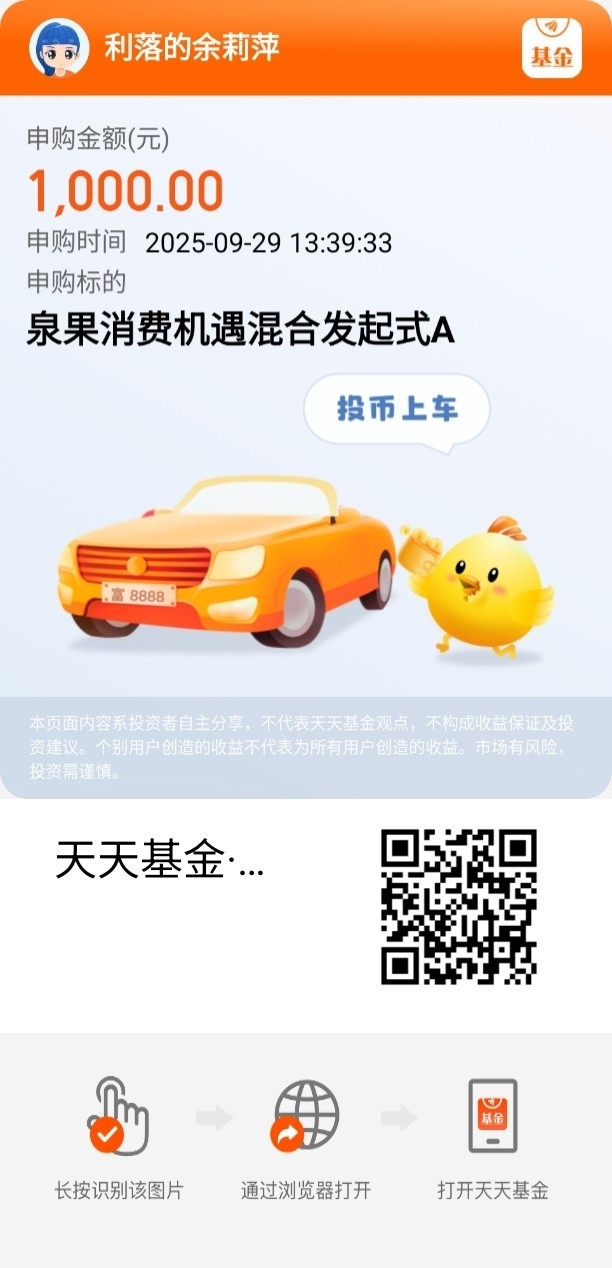 去年以来,国务院就扩大消费领域出台了一系列具体政策措施,今年9月16日商务部等几部门联合发布巜关于扩大服务消费的若干政策措施》,这一措施,坚持从供给和需求两端协同发力,以扩大优质供给为切入点,提出开展消费、新业态、新模式、新场景试点,推动创新和丰富服务消费场景。孙伟经理突破行业与空间边界,完善多元创新形态,融合几大维度,包括业态跨界、空间跨界,推动不同行业打破壁垒实现深度联动。该基金配置了汽车、传媒、食品饮料、电力设备、电子等十多个消费领域,行业范围广,风险能降低,业绩较稳定,是当下这个时点不错的选择。我深信孙伟经理凭借其经济学专业知识和实战能力,一定能掌舵好这只基金,给我们基民在时间的长坡上,带来不菲的厚雪,让我们共同见证盛开的鲜花吧!@泉果基金已参与