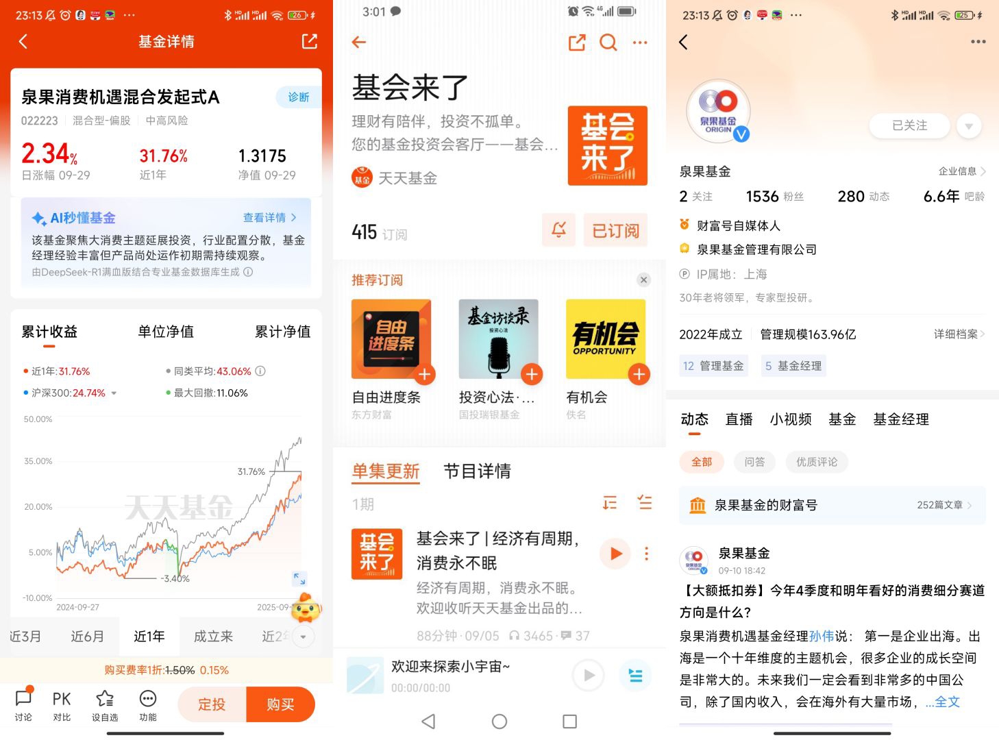 面对这样的行情,泉果消费机遇混合发起式A的优势在于其“灵活布局+深度研究”的策略。不同于被动跟踪消费指数的基金,这只产品采用主动管理模式,基金经理能够根据市场变化动态调整持仓——既可以布局受益于复苏的传统消费龙头,比如具备强品牌力的食品饮料企业、渠道下沉成效显著的家电厂商;也能捕捉新兴消费机遇,比如宠物经济、银发消费、智能消费等赛道的成长型企业。这种“全消费覆盖”的策略,既能在牛市初期把握传统消费的估值修复机会,又能在行情中后期享受新兴消费的弹性红利,完美适配消费板块的结构性行情。