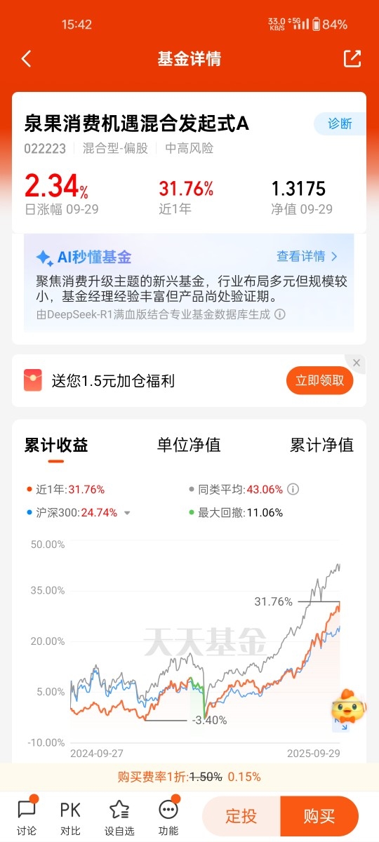 #牛市消费怎么买?# $泉果消费机遇混合发起式A$