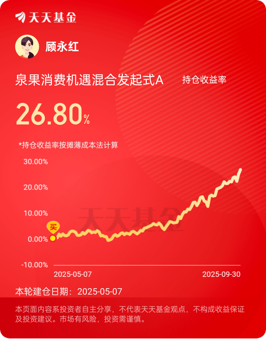 这些新消费趋势共同构成了未来消费行业增长的新引擎,也为投资者指明了方向。我是泉果基金的忠实粉丝,一直坚定持有$泉果消费机遇混合发起式C$ ,对收益回报和持有体验感到非常满意!将会继续择机加仓,并坚定持有,获取更好的长期投资回报!@泉果基金