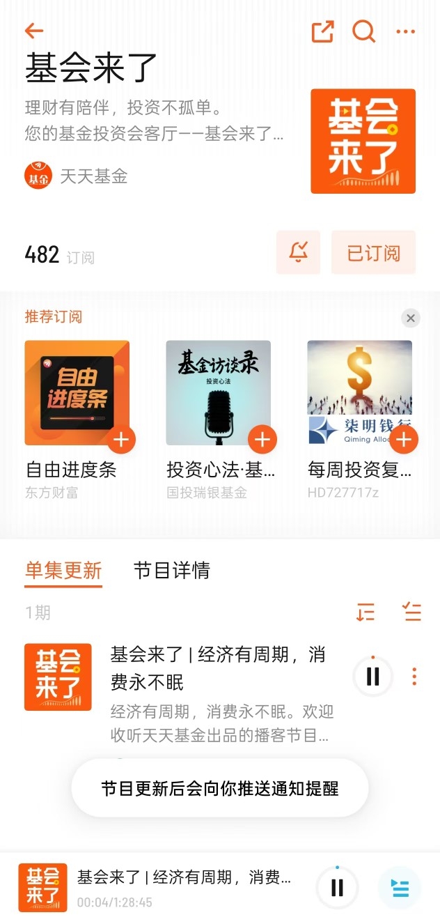 #牛市消费怎么买?# 为了订阅上“基会来了”栏目还是花费了一些时间,原来是在小宇宙这个APP里面进行订阅。