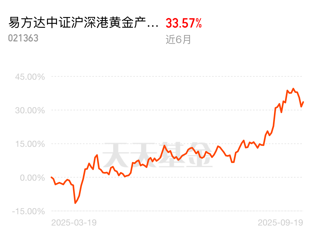 黄金处于强势周期,牛市里黄金股比黄金 ETF 联接划算。弹性大是金价放大器,涨势跟不上。易方达黄金股短期业绩优于同类产品,想蹭黄金行情的,选它上车,准能跟着分杯羹!