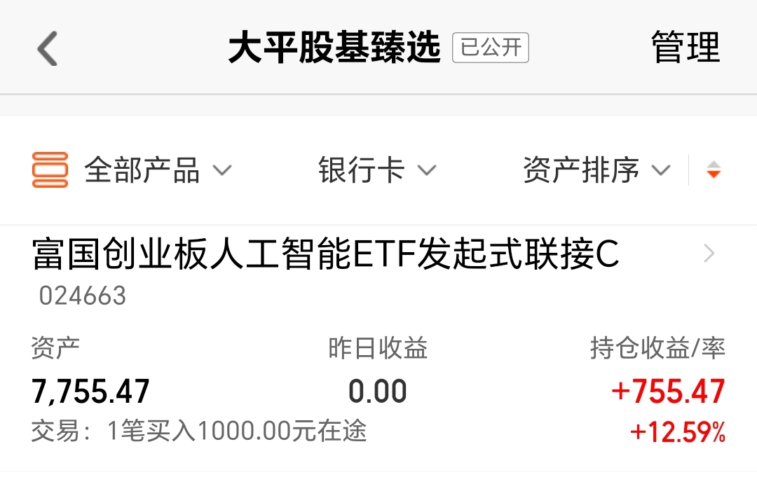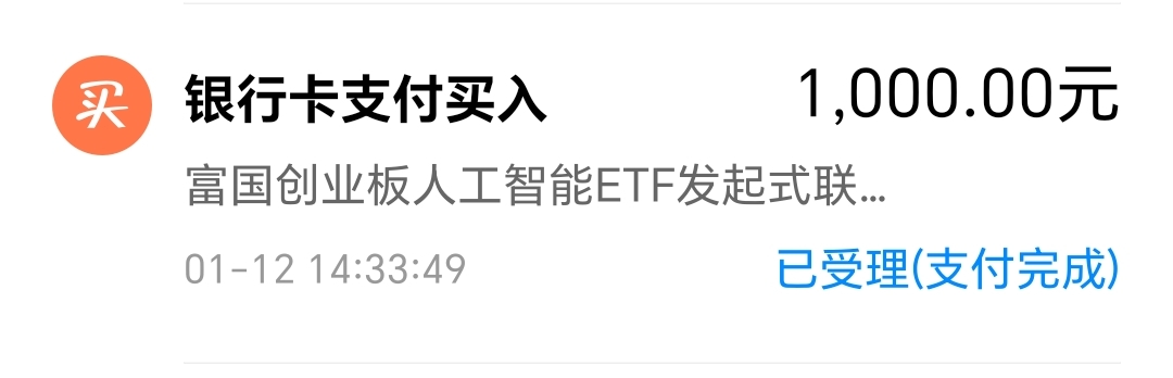 今天我买入$富国创业板人工智能ETF发起式联接C(OTCFUND|024663)$1000块钱。