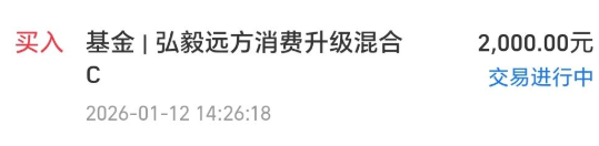 今天我买入$弘毅远方消费升级混合C(OTCFUND|014422)$2000块钱。