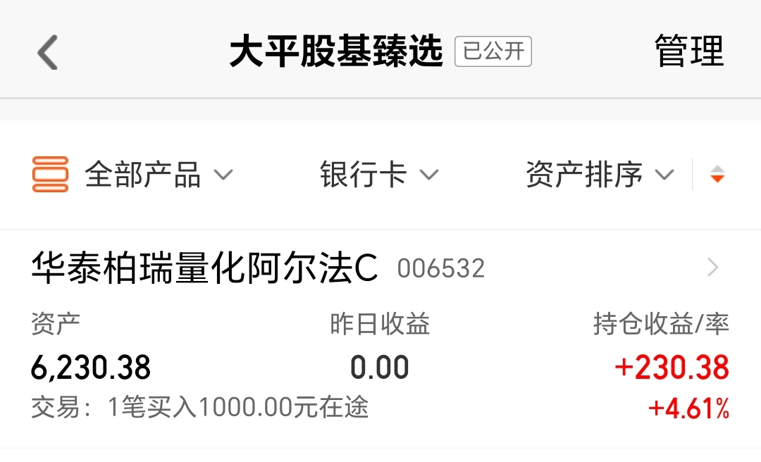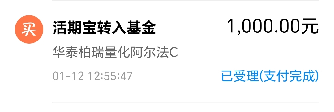 今天我买入$华泰柏瑞量化阿尔法C(OTCFUND|006532)$1000块钱。