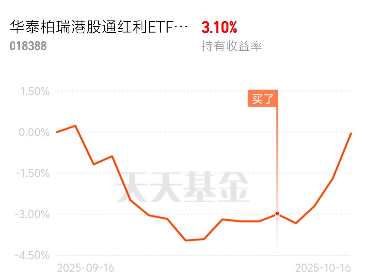 从科技股出来一部分资金,正愁没地方去。$华泰柏瑞港股通红利ETF联接基金C$连涨